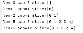 fmt.Printf("len=%d cap=%d slice=%v\n", len(x), cap(x), x)