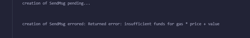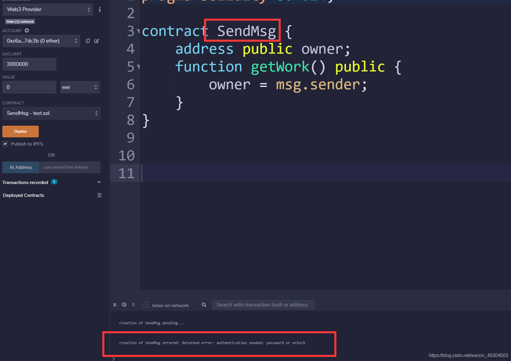 3 .Returned error: insufficient funds for gas * price + value:部署合约需要手续费,得赚取,通过挖矿