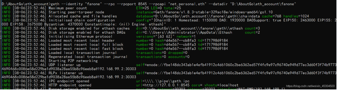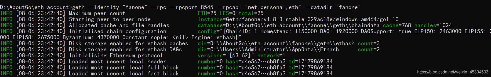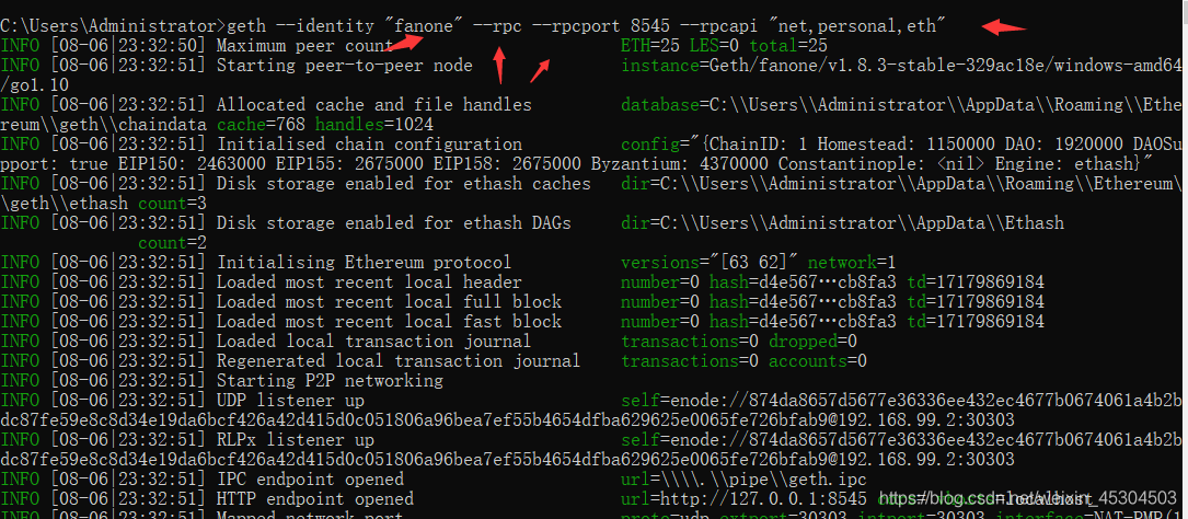 geth --datadir "fanone" --identity "fanone" --rpc --rpcport 8545 --rpcapi "db,eth,net,web3,personal" --rpccorsdomain "*" console