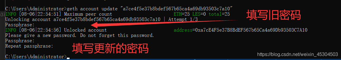 更新指定账户:geth account update "用户地址"