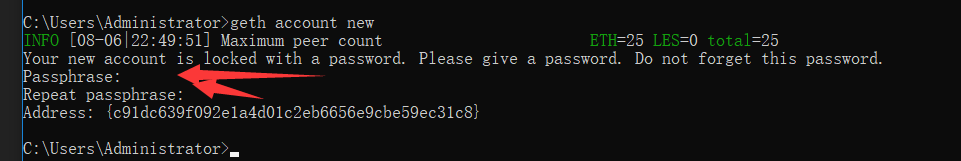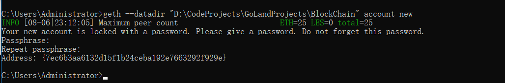 如:geth --datadir “路径” account new