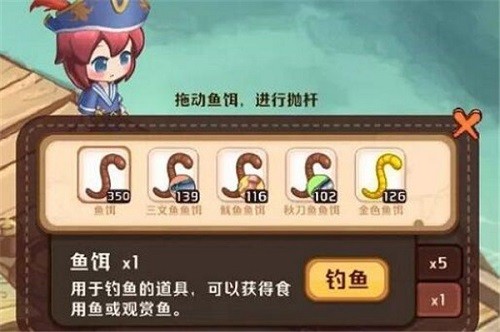 2、玩家可以通过在沙滩累计拾取一定的海星、贝壳或海螺来获取鱼饵;